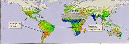 Given these events, vegetation is going to be an important topic of conversation. According to the vegetation index, there’s a mix of good and poor vegetation in the Western hemisphere. Northern Brazil, for instance, has an overall very wet pattern and healthy vegetation, while Southern Brazil and Northern Argentina are experiencing the poorest vegetation they’ve seen in 40 years.