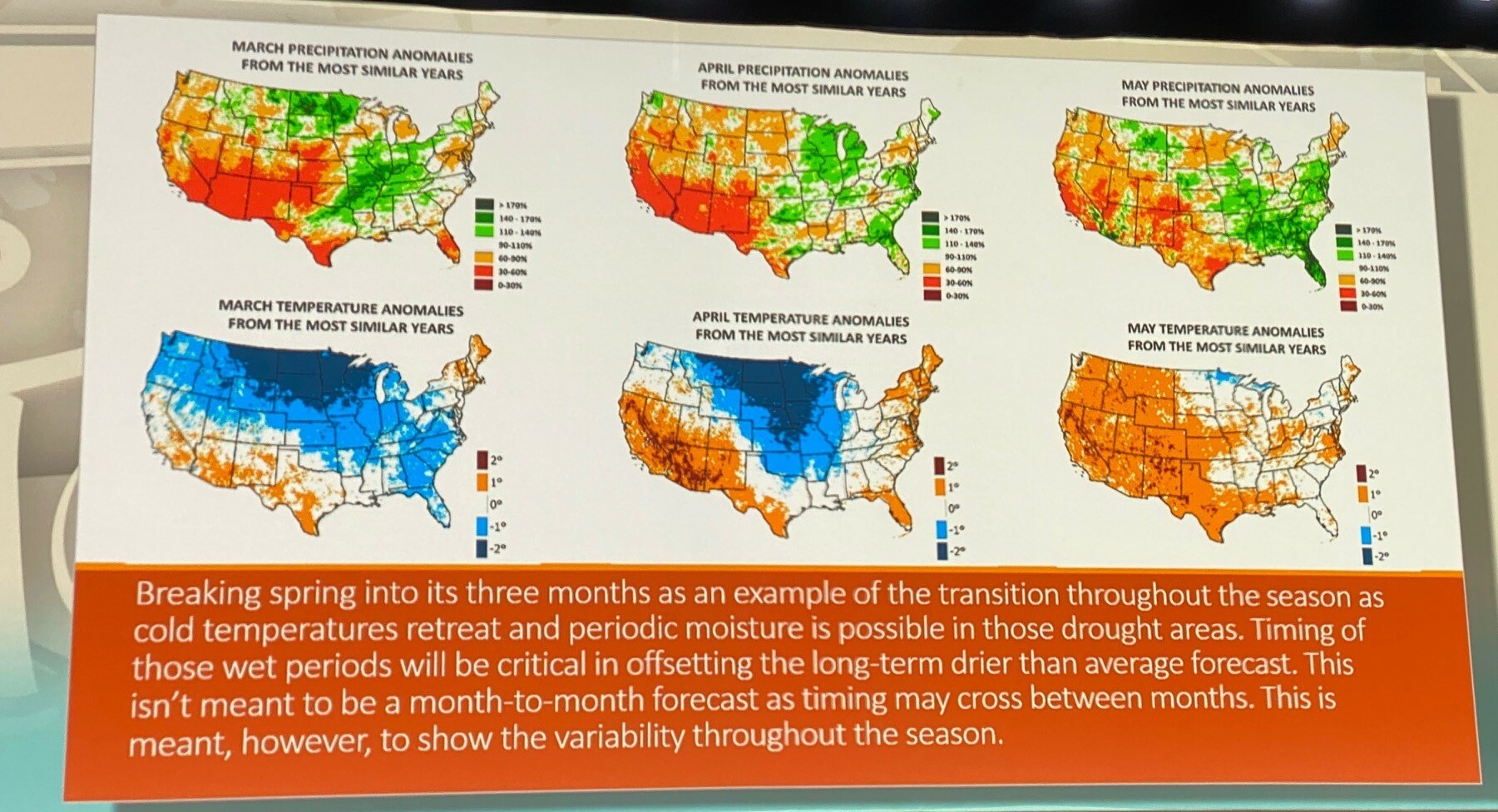 “I start going back in time and find similar events historically,” he said. “I whittle that list down even more, and usually try to get 5-7 best-fit years for seasonal forecasts.”