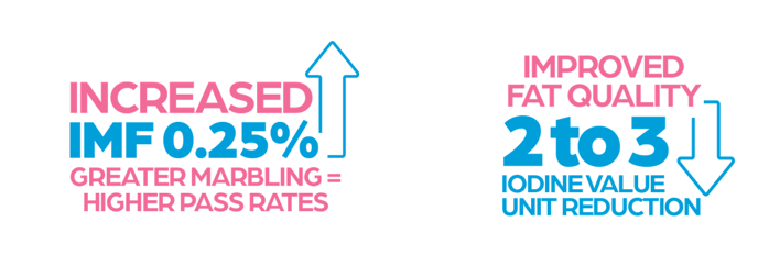 When estrus is suppressed in market gilts with IMPROVEST, fat quality is the component of meat quality that's affected to the highest degree. No differences have been reported for color, pH, or water-holding capacity of lean muscle when comparing IMPROVEST carcasses to conventional gilt carcasses, according to Bohrer. Iodine value (IV), which is an indication of fat firmness as well as oxidative stability of fat during prolonged periods of storage, is improved by 2–3 units (a reduction of 2–3 iodine value units) when market gilts are administered IMPROVEST.