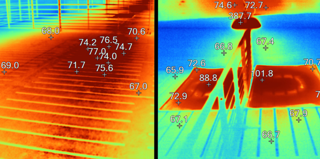 A more evenly distributed comfort zone is the most significant advantage of using tube heat. Thermal photos comparing temperatures of brooders and tube heaters clearly illustrates the difference. The brooders tend to have a hot spot in the middle where the pigs do not lay. An integrator fieldman interviewed about his experience with tube heaters remarked, "The pigs have a much larger "happy zone" with the tube heaters. If we aren't careful, the pigs will move off the hot spot under the brooders and lay on the slats. In extreme cases, they will even start to dung under the brooders. We don't even use mats under the tube heaters for the pigs to lay on. The only mats we use are for starter feed."