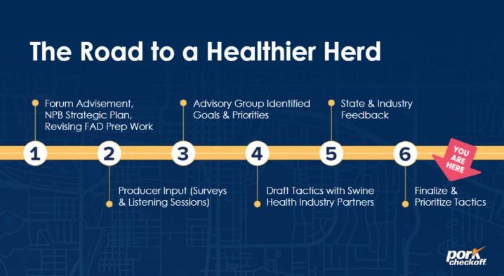 Staff at NPB, National Pork Producers Council (NPPC), state pork associations, American Association of Swine Veterinarians (AASV) and Swine Health Information Center (SHIC) worked together to develop work plans under each priority area, accounting for current industry efforts and identifying new ways to connect.