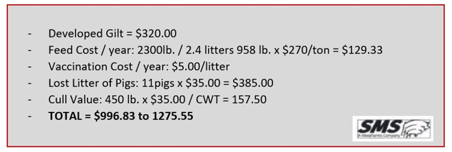 Dead sows don’t have pigs or salvage value. Swine Marketing Systems (SMS) estimates a dead sow is a financial loss of $996.83 to $1275.55. If you want to see if your terrible prolapse issue will go away – Try Genesus. Compare and Decide.