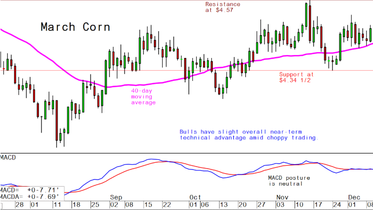 March corn futures--$4.41 3/4 to $4.52 1/4 and a sideways bias