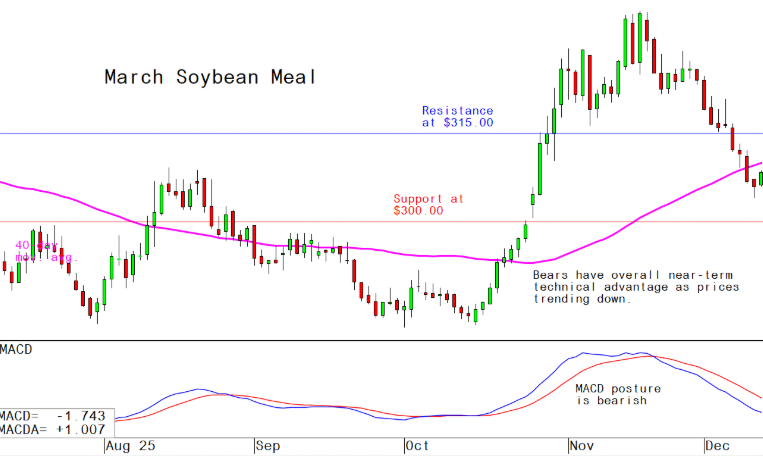 January soybean meal futures--$295.00 to $315.00, and with a sideways bias
