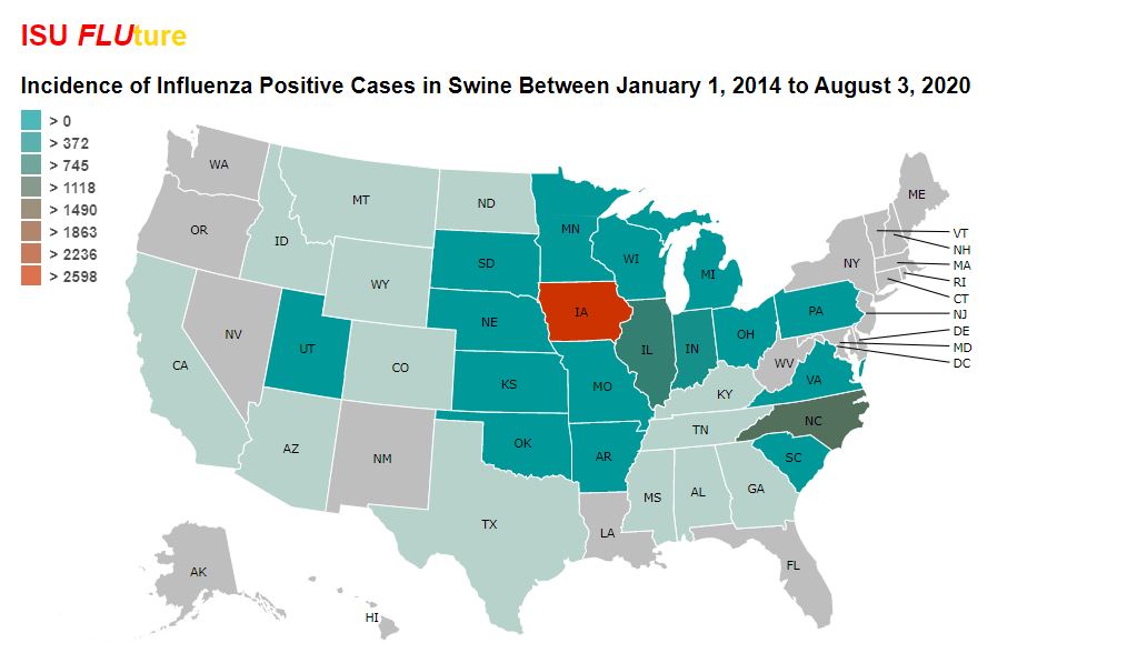 Zeller, M. A., Anderson, T. K., Walia, R. R., Vincent, A. L., & Gauger, P. C. (2018). ISU FLUture: a veterinary diagnostic laboratory web-based platform to monitor the temporal genetic patterns of Influenza A virus in swine. BMC bioinformatics, 19(1), 397. (data retrieved 03 Aug, 2020).