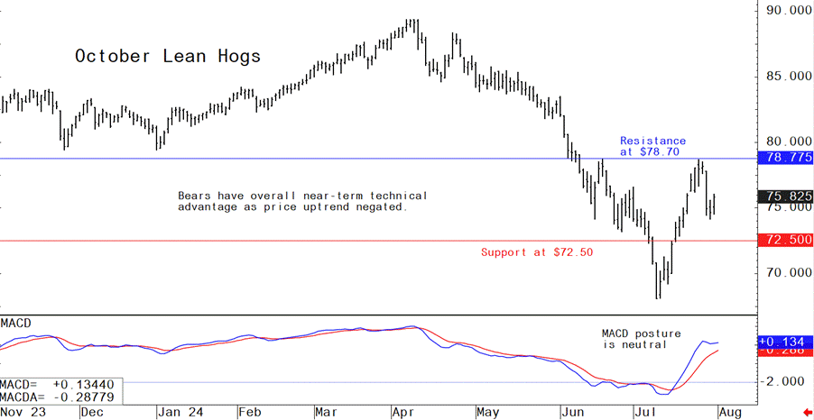October lean hog futures--$73.00 to 79.00 and with a sideways bias
