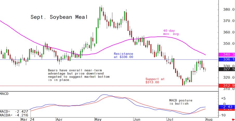 September soybean meal futures--$320.00 to $340.00, and with a sideways bias