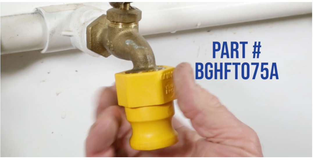 The MEDKIT-1 consists of the components needed to connect one side of a medicator. New installations will require two kits for each medicator hookup. Order additional yellow adaptors (BGHFT075A) for each hose bib when setting up a new location.