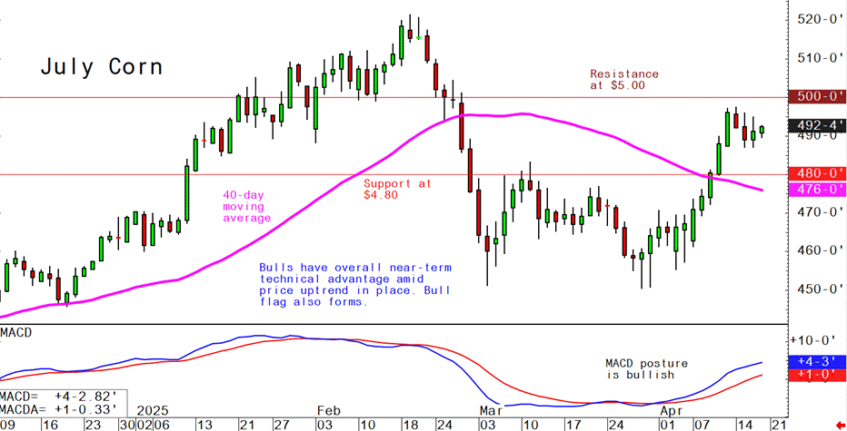 July corn futures--$4.85 to $5.05 and a sideways-higher bias
