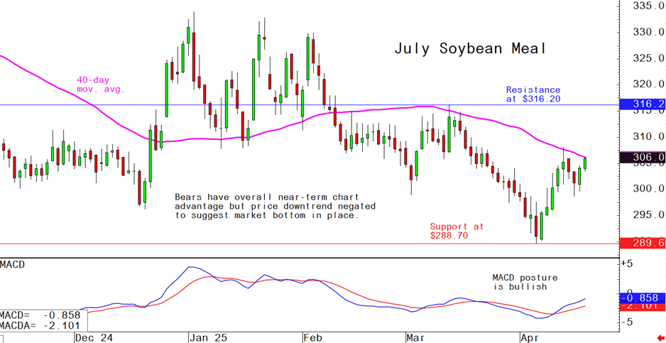 July soybean meal futures--$300.00 to $310.00, and with a sideways-higher bias