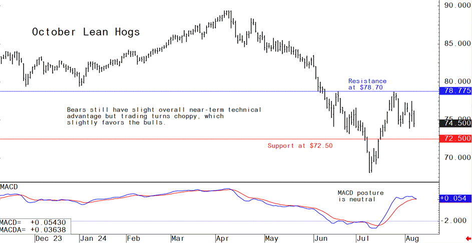 October lean hog futures--$72.50 to 79.00 and with a sideways bias