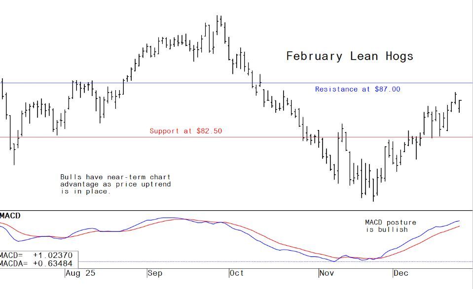 February lean hog futures--$84.00 to $87.00 and with a sideways-higher bias