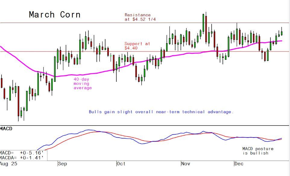 March corn futures--$4.40 to $4.57 and a sideways-higher bias