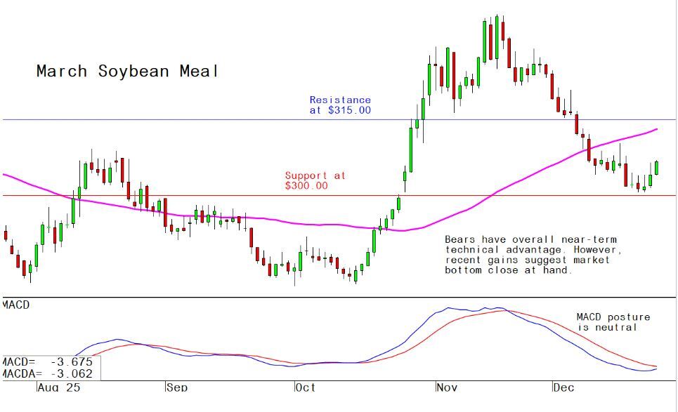 January soybean meal futures--$297.00 to $310.00, and with a sideways-higher bias