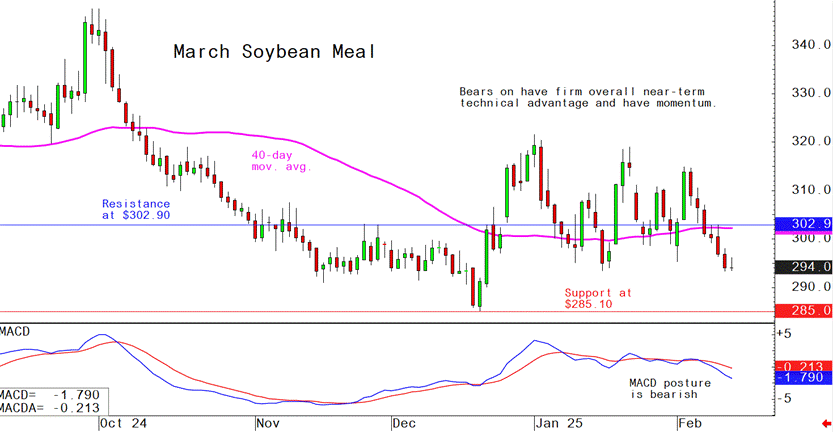 March soybean meal futures--$290.00 to $310.00, and with a sideways-higher bias