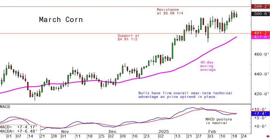 March corn futures--$4.90 to $5.15 and a sideways-higher bias
