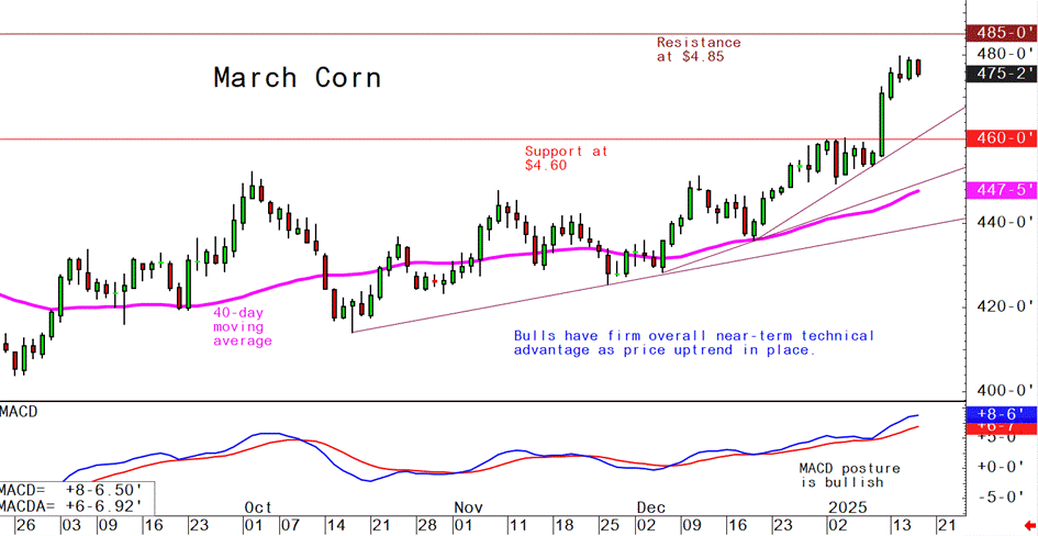 March corn futures--$4.65 to $4.90 and a sideways-higher bias