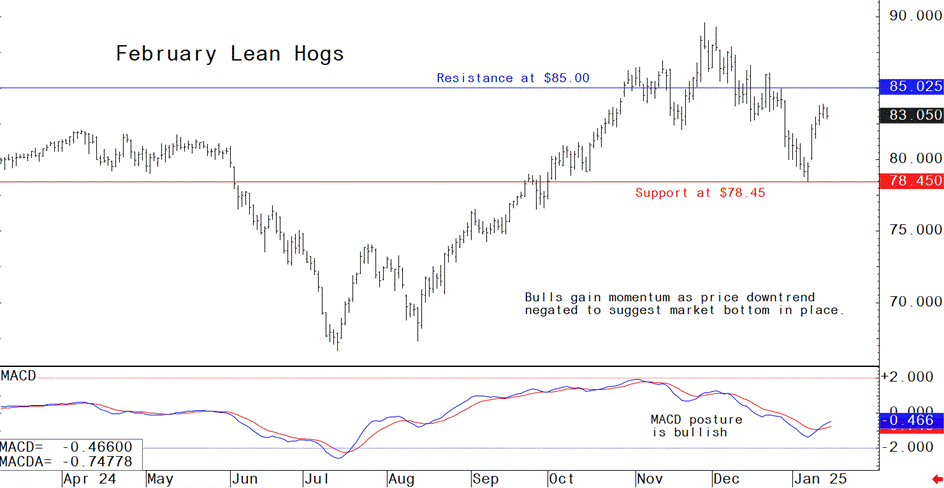 February lean hog futures--$80.00 to 87.00 and with a sideways-higher bias