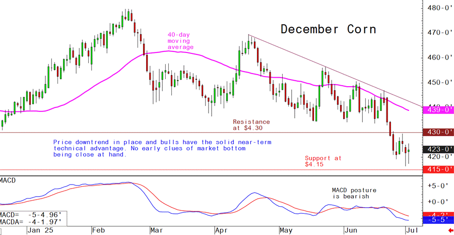 December corn futures--$4.10 to $4.30 and a sideways-lower bias