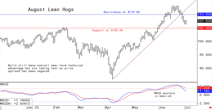 August lean hog futures--$105.00 to $110.00 and with a sideways-lower bias