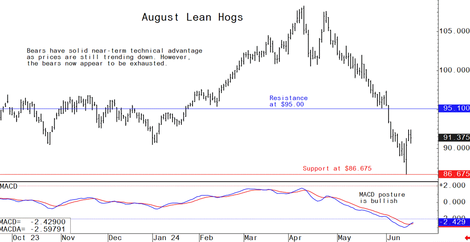 August lean hog futures--$86.675 to 95.00 and with a sideways-higher bias