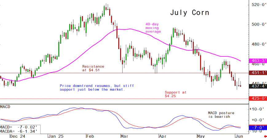 July corn futures--$4.30 to $4.65 and a sideways bias