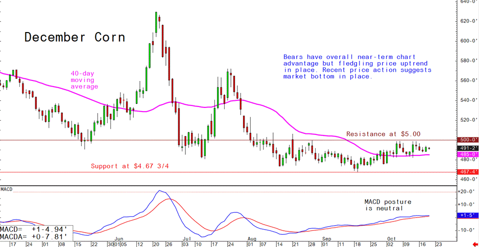 December corn futures--$4.67 3/4 to $5.10 and a sideways bias