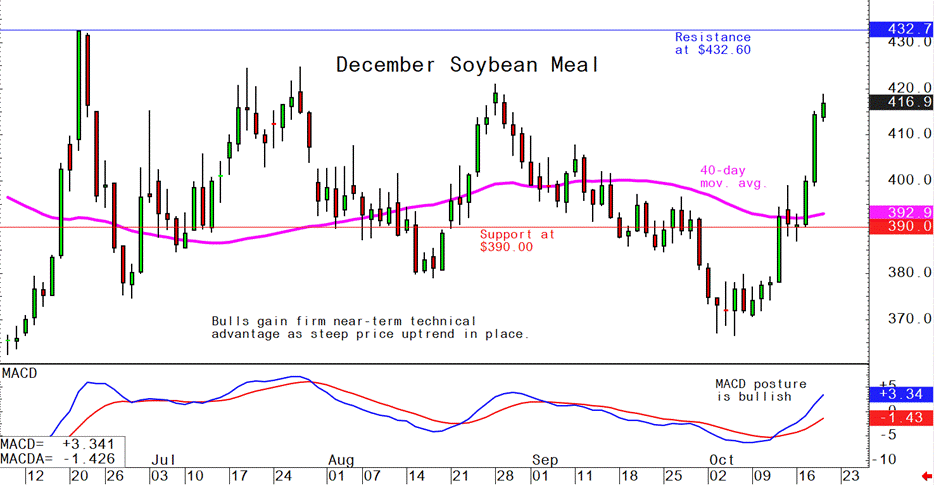 December soybean meal futures--$400.00 to $435.00, and with a sideways-higher bias