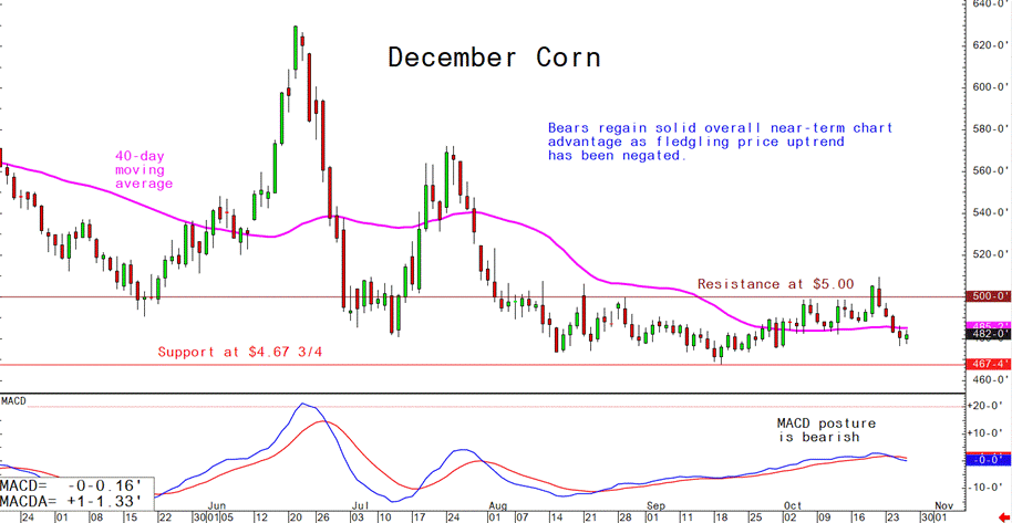 December corn futures--$4.67 3/4 to $5.00 and a sideways bias