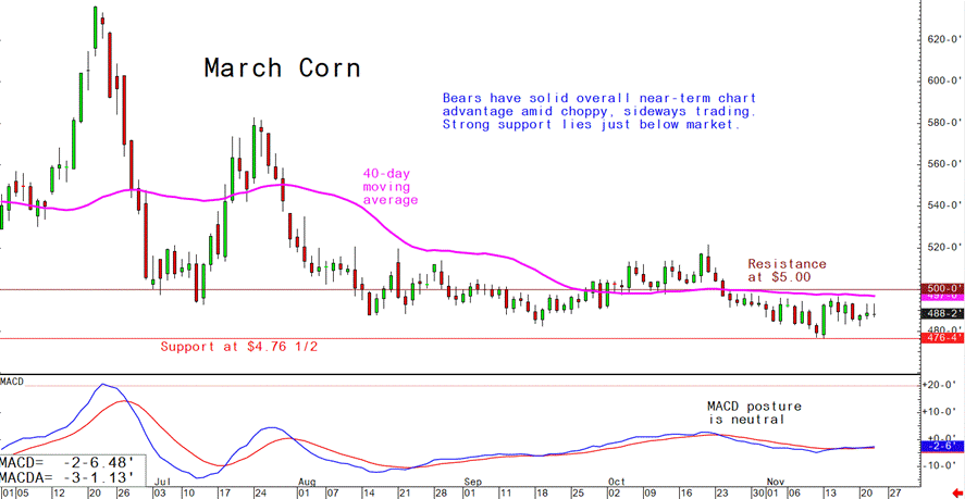 March corn futures--$4.76 1/2 to $5.00 and a sideways bias