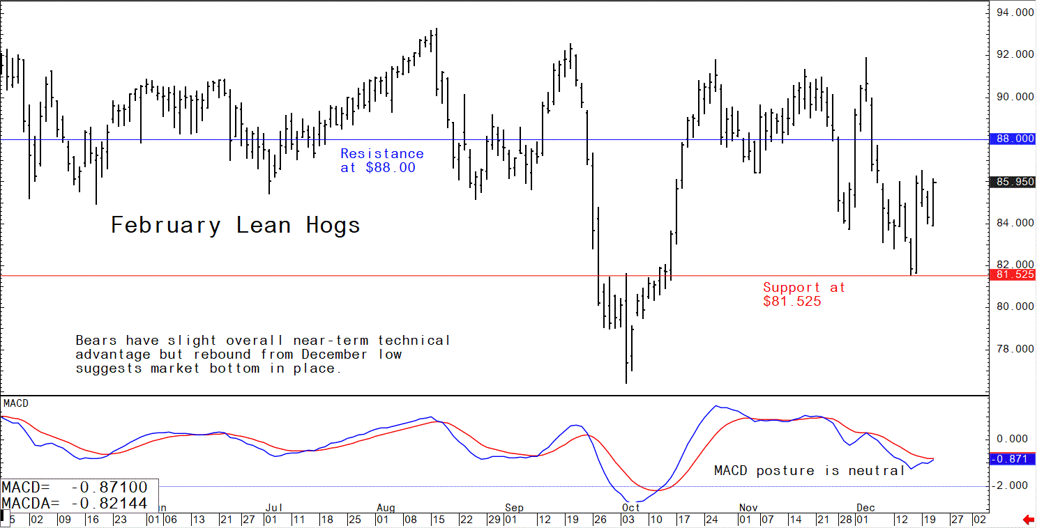 February lean hog futures--$81.525 to $88.00 and with a sideways-higher bias