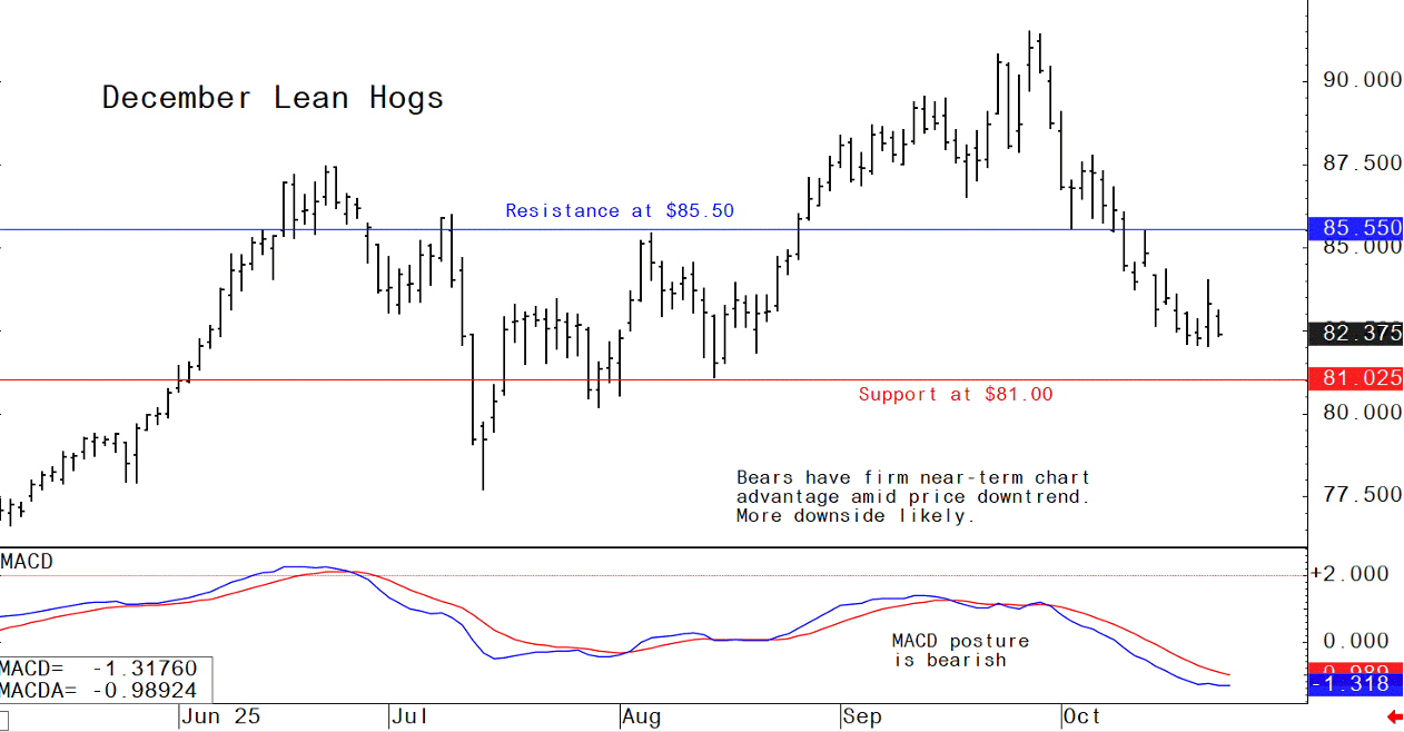December lean hog futures--$81.00 to $85.00 and with a sideways-lower bias