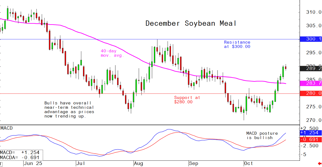 December soybean meal futures--$282.00 to $300.00, and with a sideways-higher bias