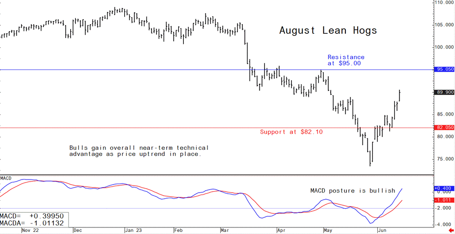 August lean hog futures--$82.00 to $95.00 and with a sideways-higher bias