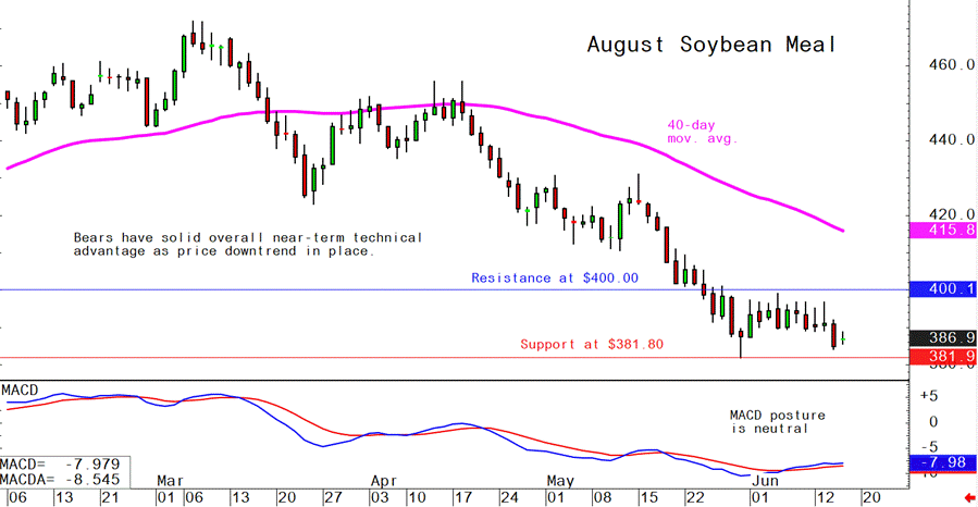 August soybean meal futures--$380.00 to $400.00, and with a sideways bias