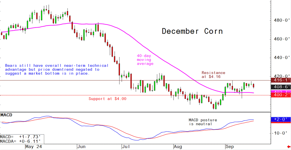 December corn futures--$3.97 to $4.23 3/4 and a sideways bias