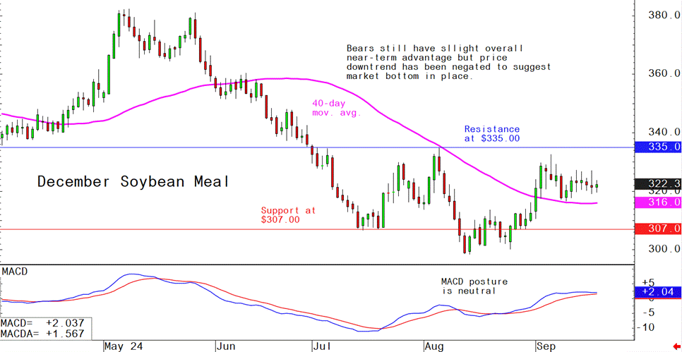 December soybean meal futures--$310.00 to $335.00, and with a sideways bias