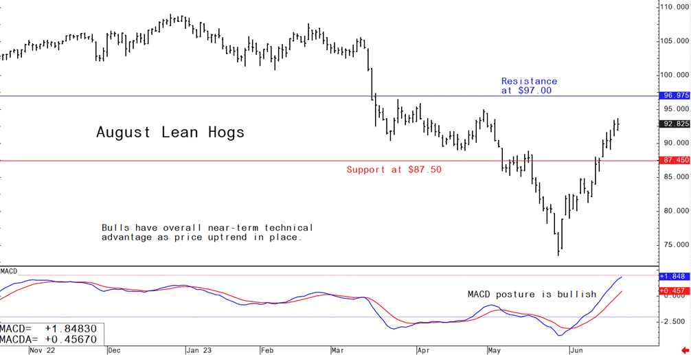 August lean hog futures--$88.00 to $97.50 and with a sideways-higher bias