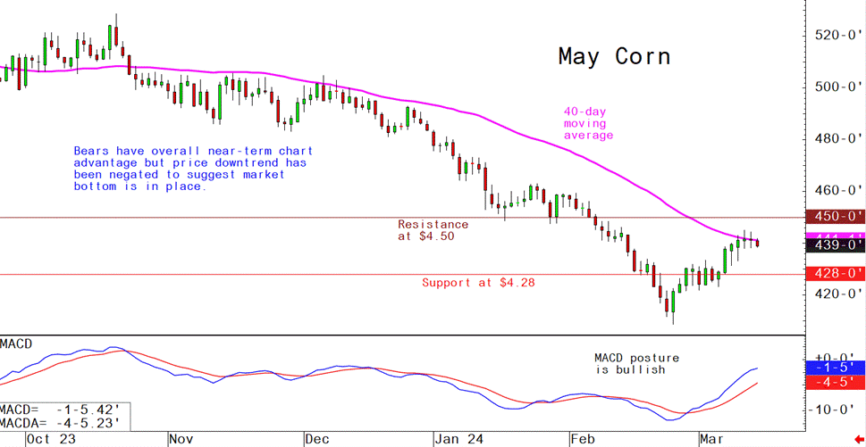 May corn futures--$4.21 to $4.60 and a sideways-higher bias