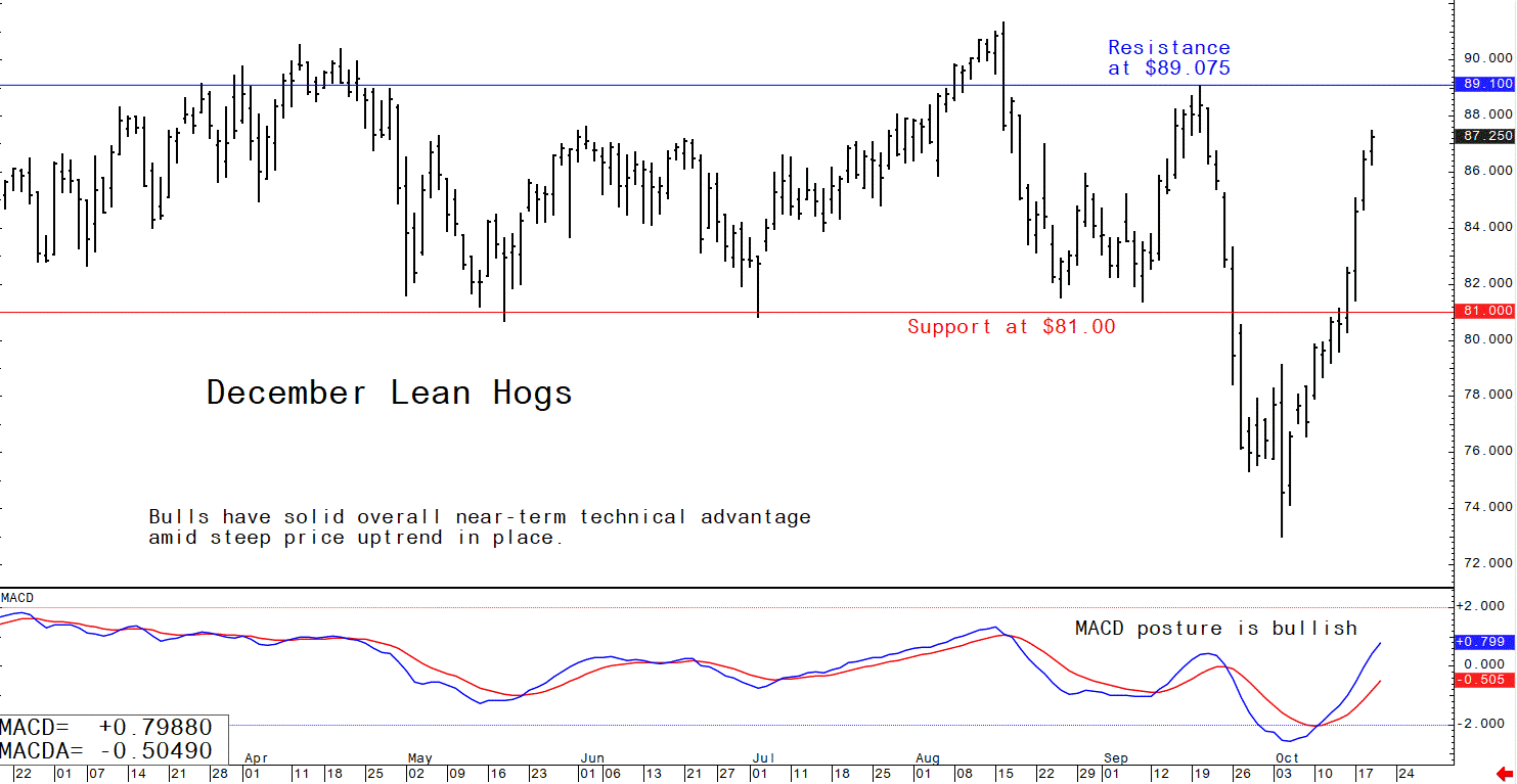 December lean hog futures--$81.00 to $91.35, and with a sideways-higher bias