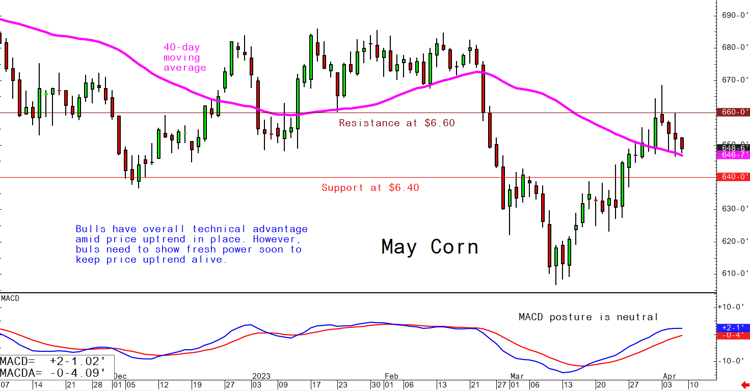 May corn futures--$6.40 to $6.60 and a sideways bias