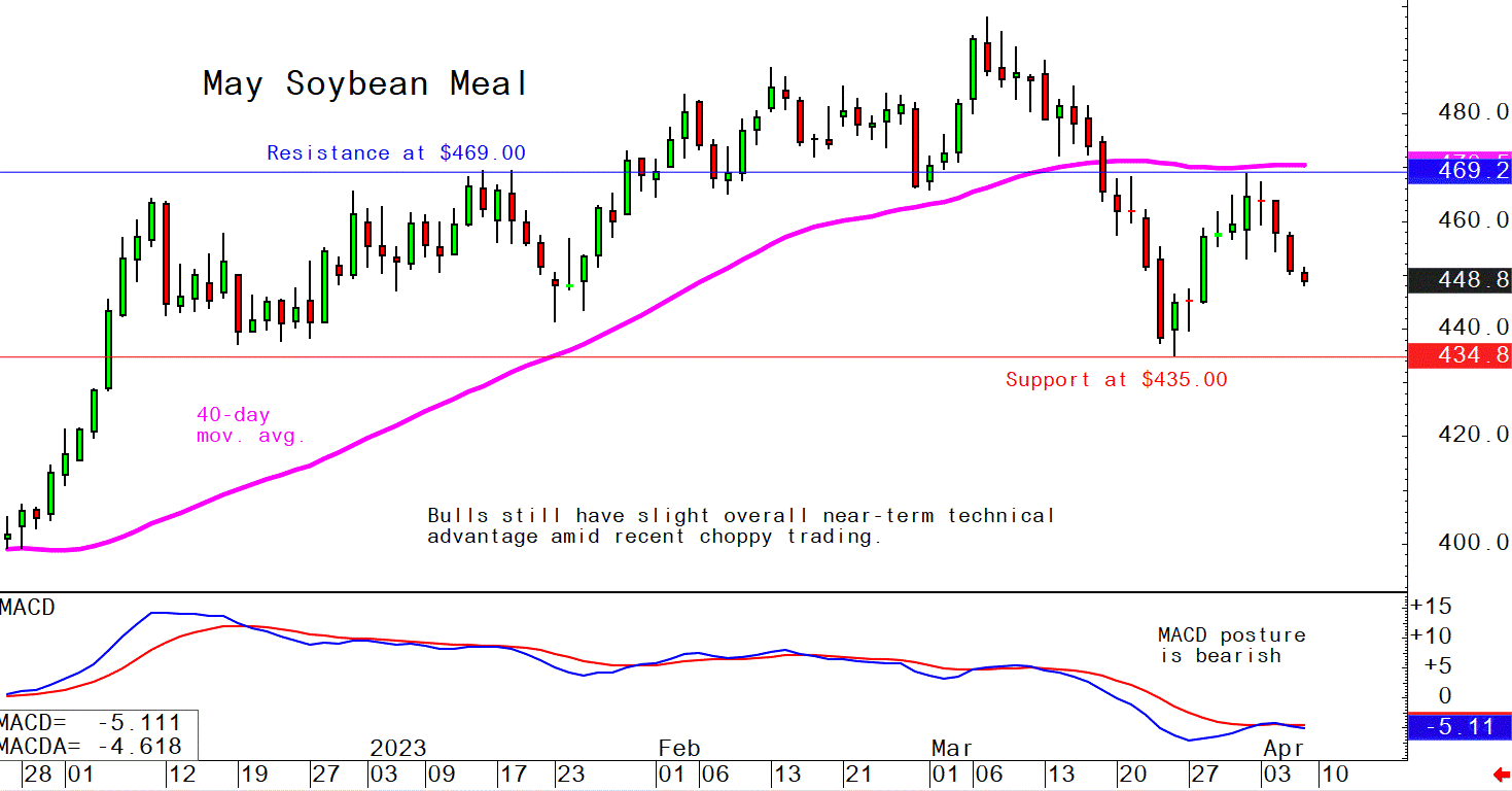May soybean meal futures--$435.00 to $469.00, and with a sideways bias