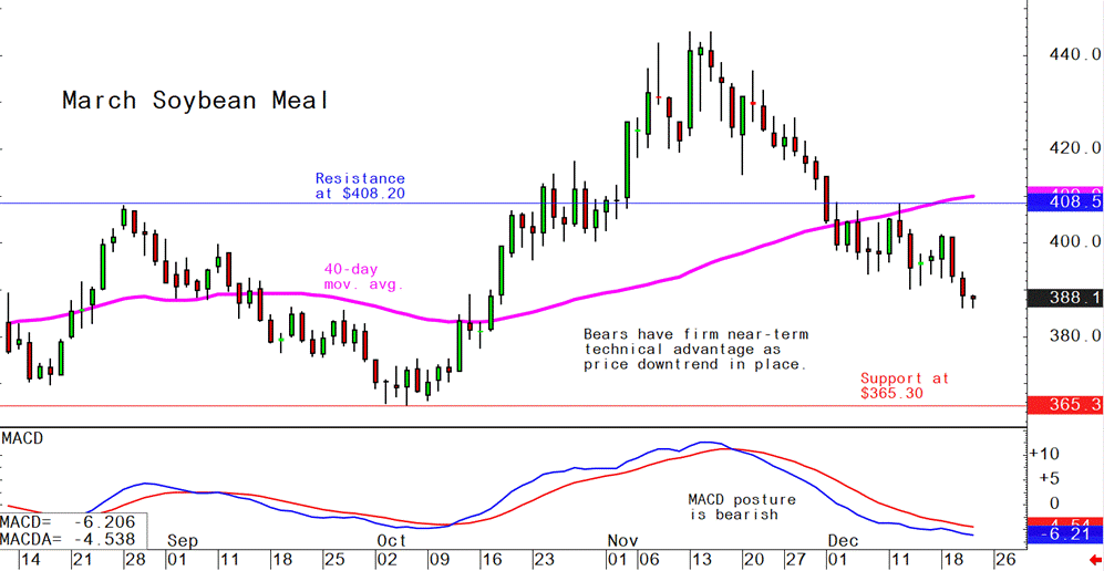 March soybean meal futures--$365.30 to $405.00, and with a sideways-lower bias