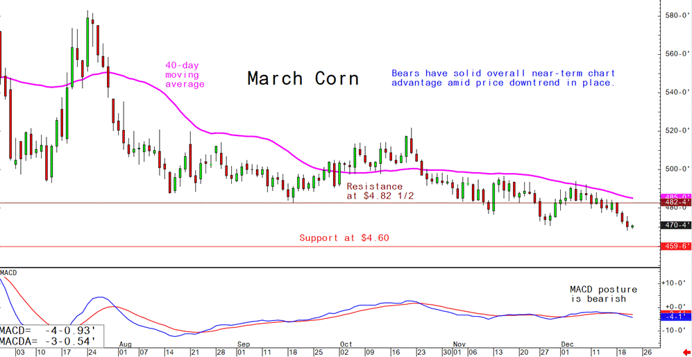 March corn futures--$4.50 to $4.85 and a sideways-lower bias