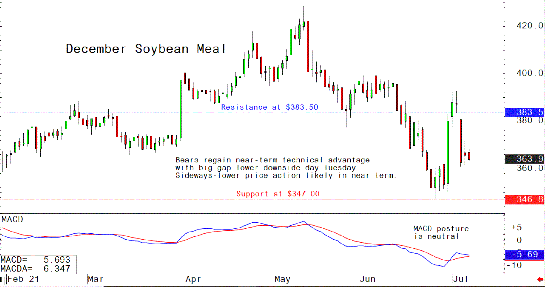 December soybean meal futures--$347.00 to $380.00, and with a sideways bias