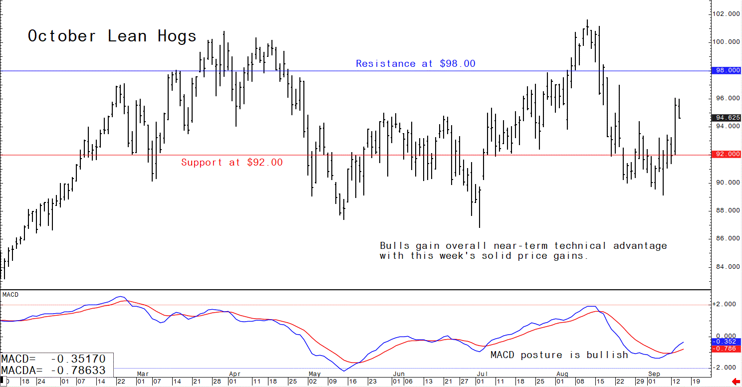 October lean hog futures--$92.00 to $98.00, and with a sideways-higher bias