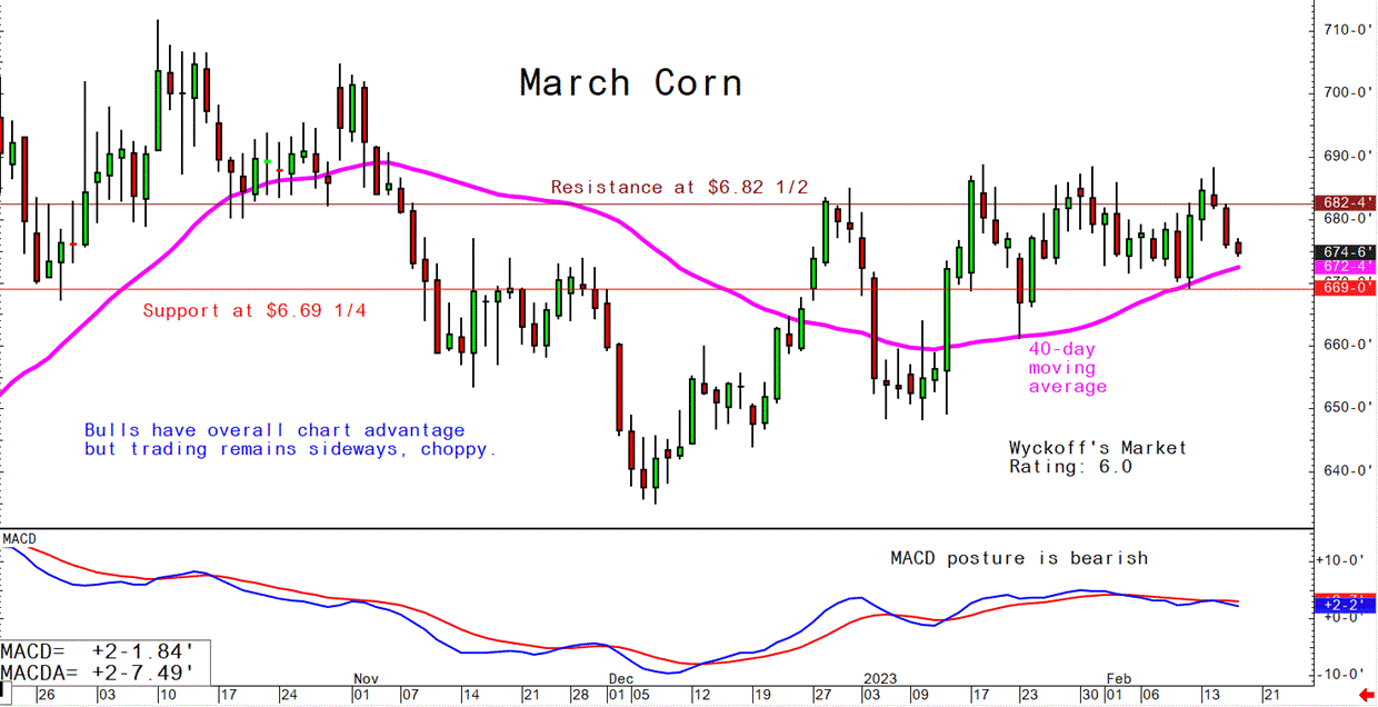 March corn futures--$6.60 to $6.88 3/4 and a sideways bias