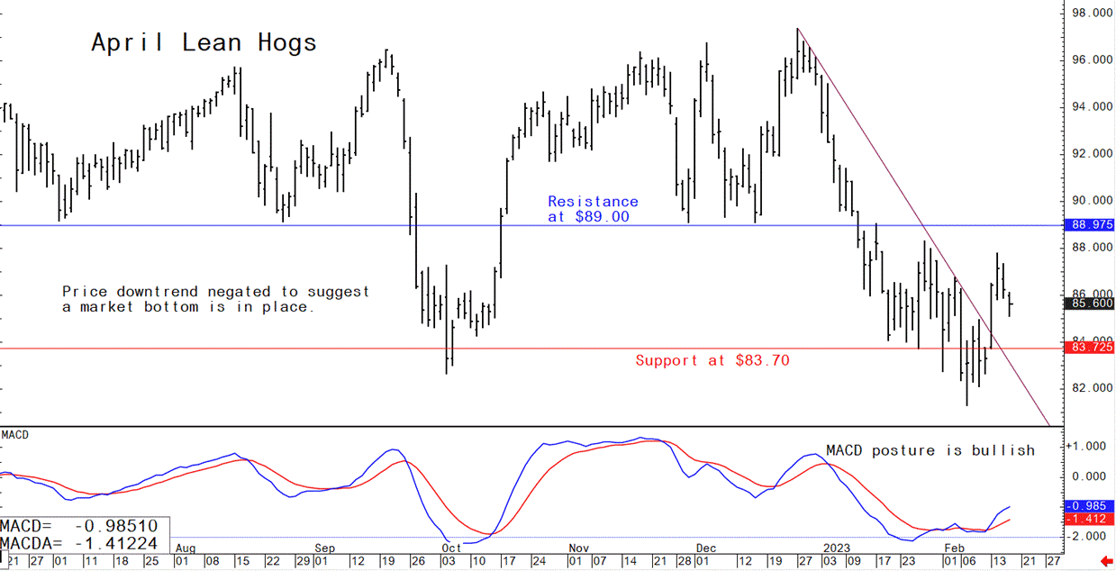 April lean hog futures--$83.00 to $90.00 and with a sideways-higher bias