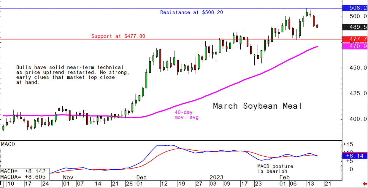 March soybean meal futures--$480.00 to $520.00, and with a sideways-higher bias