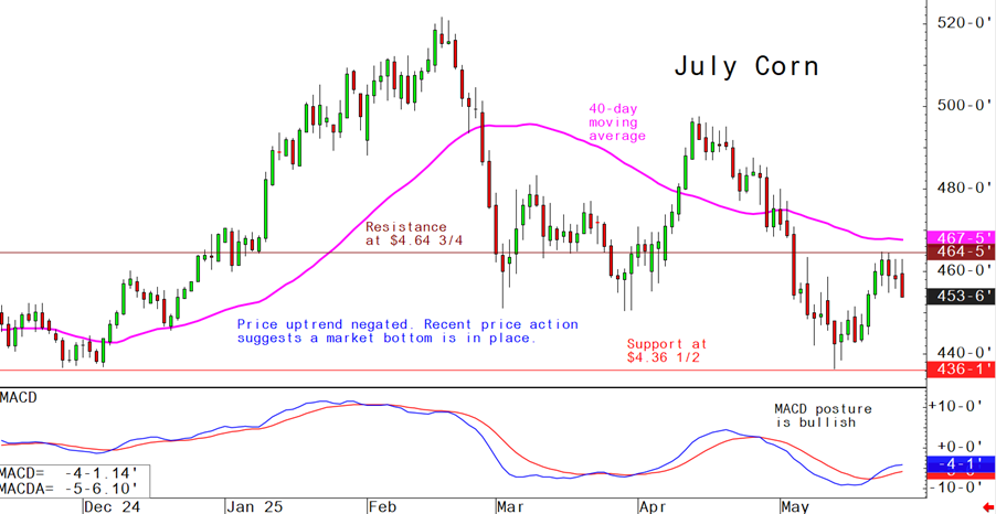 July corn futures--$4.50 to $4.70 and a sideways bias